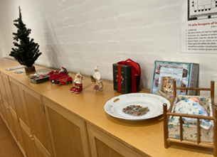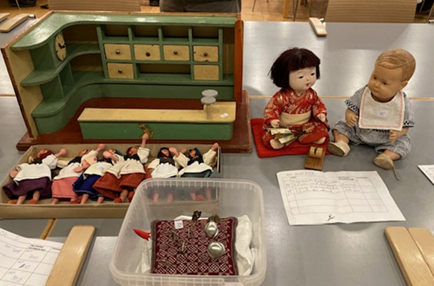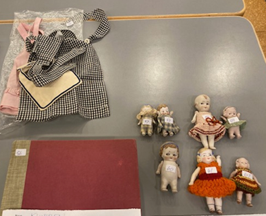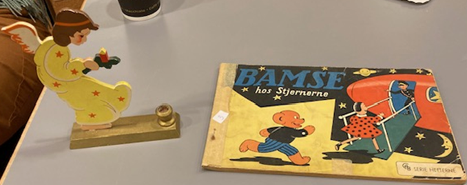 Ulla havde medbragt den dukke, der startede hendes store samling, en lille rød dukkevogn, med en lillebitte celluloid Kewpie i samt et sjovt magnetspil. Lene P,s barnebarn havde bygget et fint og detaljeret dukkehus til hende. I det boede hendes lille dukke, fra hun var barn.’