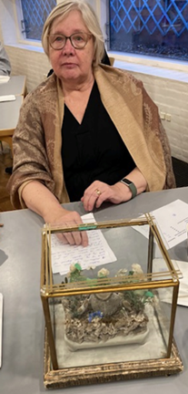 Lene P. Havde fundet en bog der hedder: Børn Leger, Hun viste også en smuk æske hun en gang, har fået, der er 2 små gamle juleæsker i. Hun fortalte også om en tur på Glyptoteket, hvor de gamle marmorkvindehoveder har de mest fantastiske frisurer.