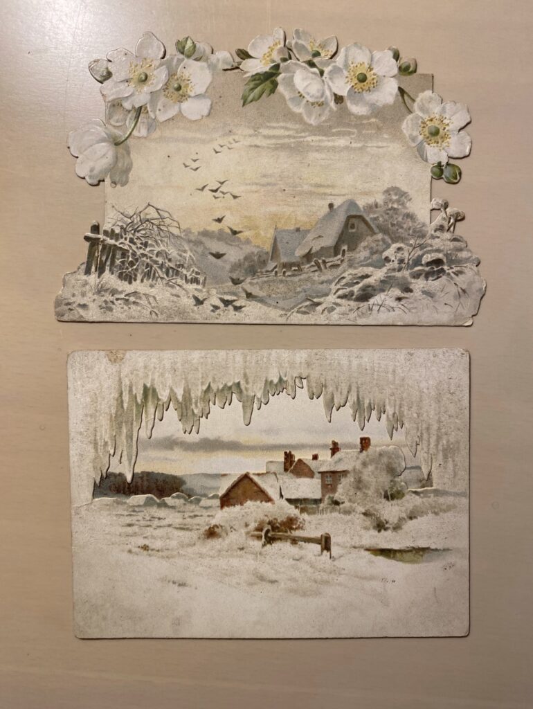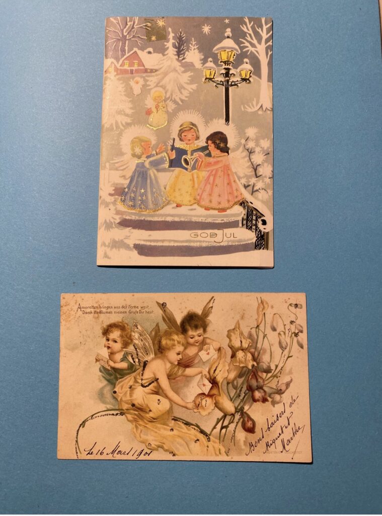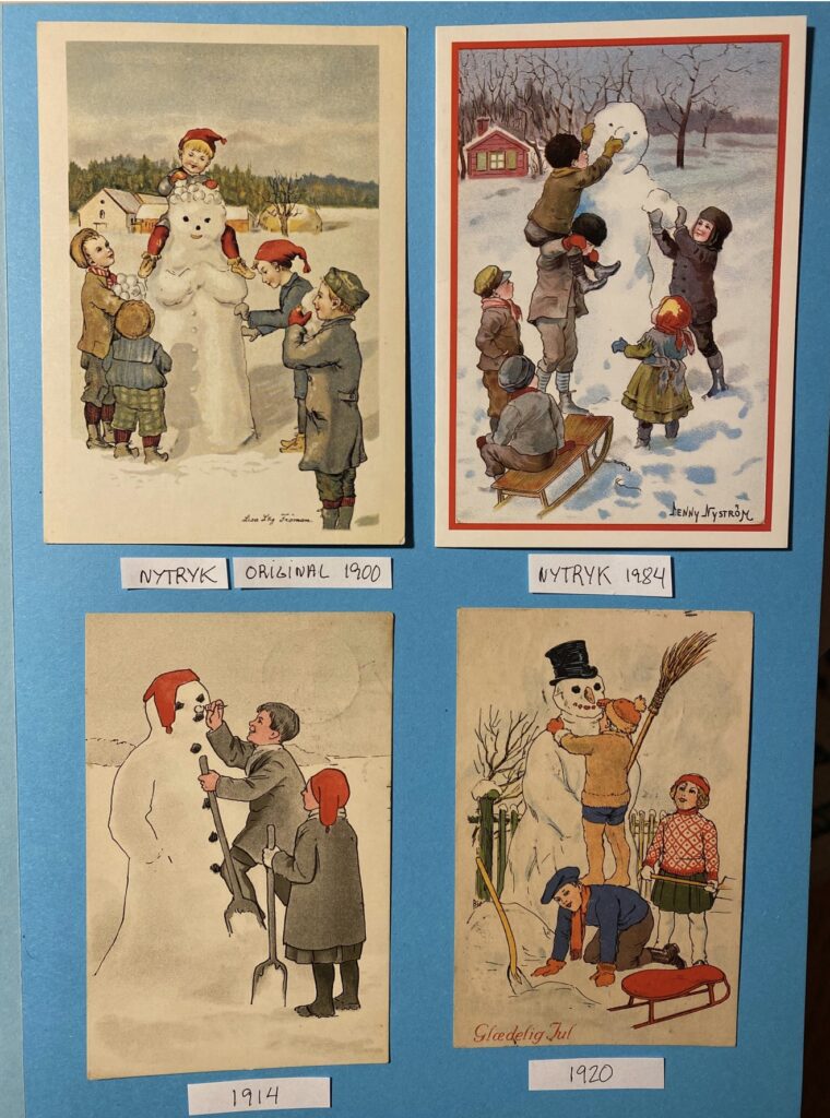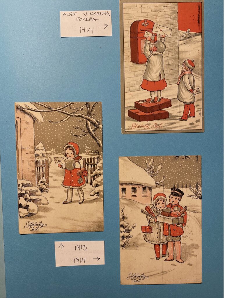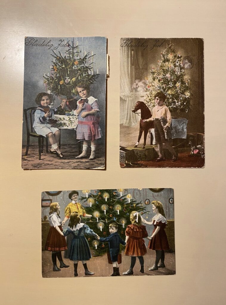Så nærmer julen sig unægtelig og byen er smykket med julelys og travle mennesker på jagt efter gaver og julestemning. En dejlig og travl tid fyldt med traditioner …. men alt er ikke mere som før for hvor blev julekortene af og hvor blev vores stolthed over det gamle danske postvæsen af? Selv de flotte røde postkasser er nu borte og postbudet ikke længere iklædt rødt. De mange skønne julekort med alverdens motiver fylder ikke længere vores hjem med søde hilsner – de fleste hilsner ligger nu som filer på den uundværlige mobil eller computeren – ak ja! Jeg elsker de gl. kort og synes I alle skal have fornøjelsen at se nogle af kortene så julestemningen kan stige et par grader. God fornøjelse og god jul!